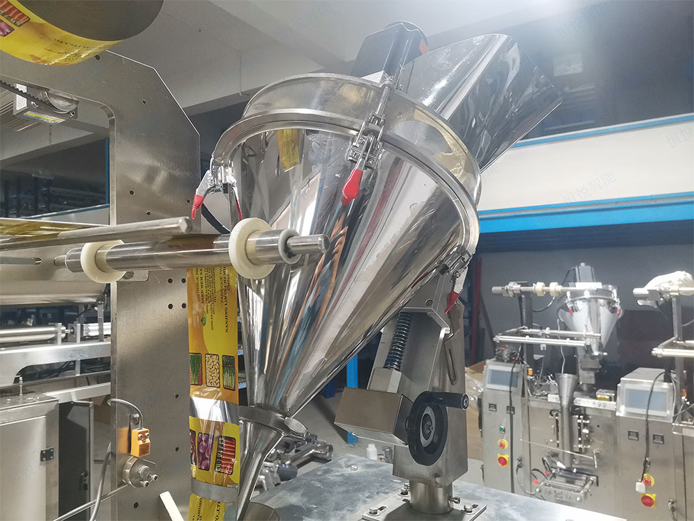 ②、粉劑自動(dòng)包裝機(jī)采用伺服電機(jī)驅(qū)動(dòng),特殊定制螺桿高精度計(jì)量稱重,夾拉式橫封拉膜可實(shí)現(xiàn)長(zhǎng)條背封圓角袋的精美包裝。